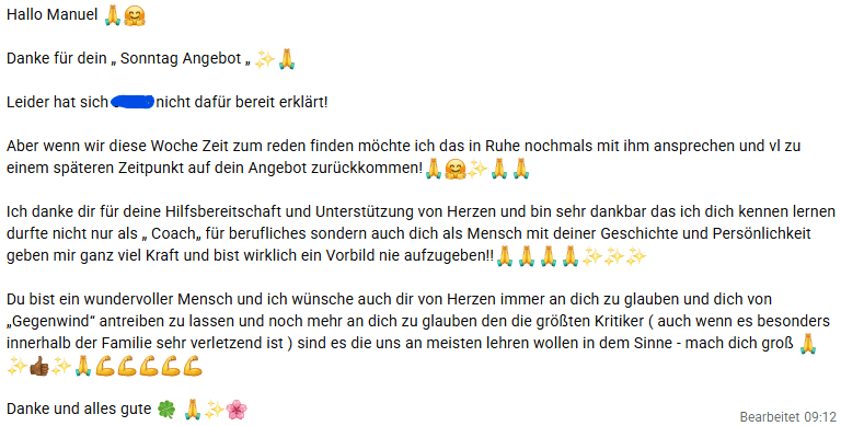 Mit Unterstützung von Karavita hat Johannes seine Ängste überwunden, einen klaren Vertriebsansatz entwickelt und sich erstmals aktiv im Telefonvertrieb ausprobiert. Die Resonanz war überraschend positiv: gutes Feedback, erste Aufträge und das Gefühl, wirklich auf dem richtigen Weg zu sein.
